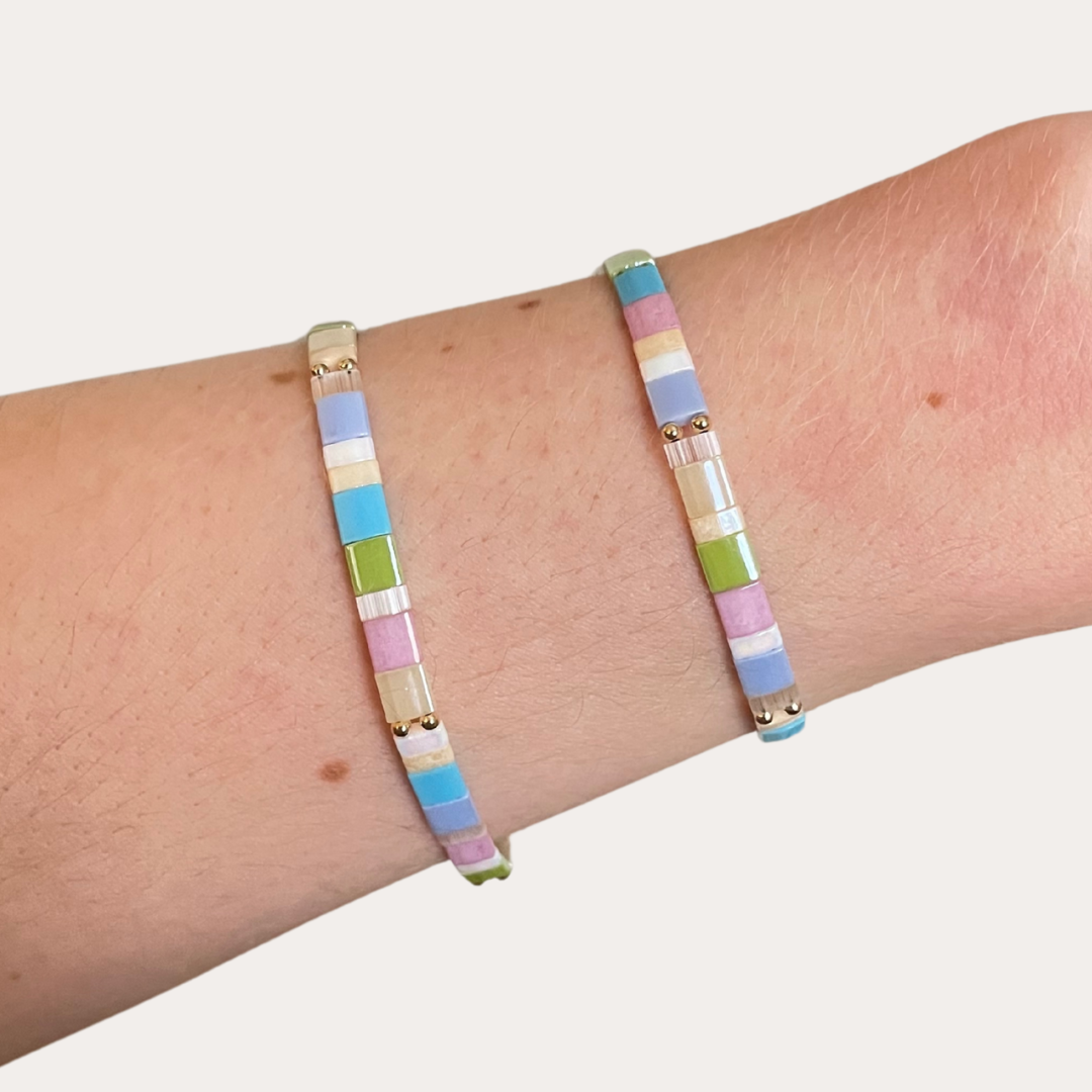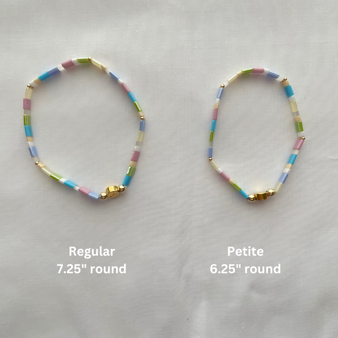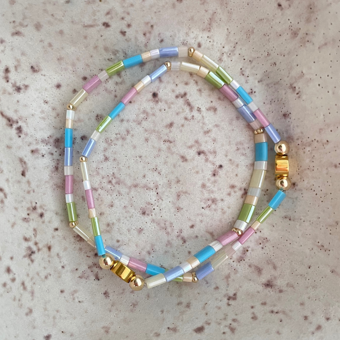 The Lilli is made with an array of bright color glass beads and 14K gold filled round beads.
